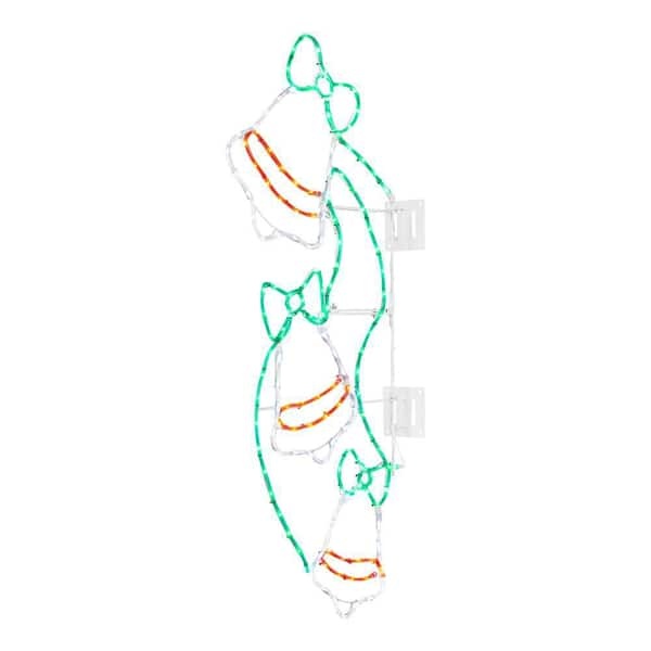 Create a festive Christmas display with this 4 ft. LED Bells from Home Accents Holiday. This bell is suitable for indoor or outdoor use. It has 164 LED lights and durable pre-wired metal frame. It plugs into a standard outlet for flexible placement. It's the perfect yard decoration for your home.