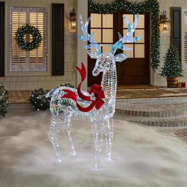 Create a festive Christmas display with this 6 ft. Iridescent Twist LED Iridescent Buck from Home Accents Holiday. This buck is suitable for indoor or outdoor use. It has 120 cool white LED lights and a durable pre-wired metal frame. It plugs into a standard outlet for flexible placement. Ground stakes, spare bulbs and fuses are included. It's the perfect yard decoration for your home, front porch, or yard. Pair with other Iridescent Twist holiday items.