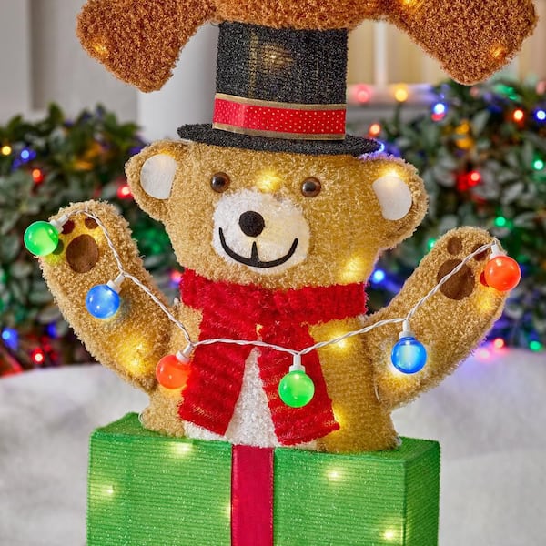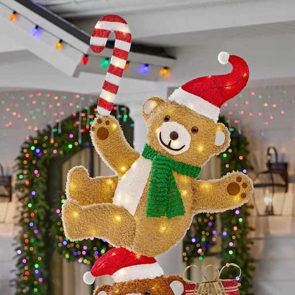 Create a festive Christmas display with this 7.5 ft. Yuletide Lane LED Stacked Bears from Home Accents Holiday. This bear stack is suitable for indoor or outdoor use. It has 110 warm white LED lights and a durable pre-wired metal frame. It plugs into a standard outlet for flexible placement. Ground stakes, spare bulbs, and fuses are included. It's the perfect yard decoration for your home, front porch, or yard. Pair with other Yuletide Lane holiday items.