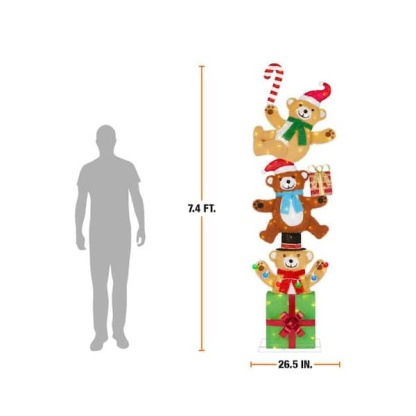 7.5 ft. Yuletide Lane LED Stacked Bears Holiday Yard Decoration Y23