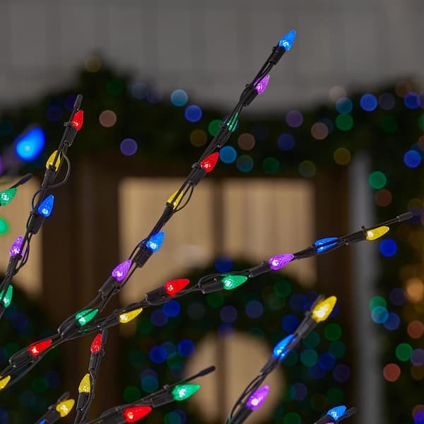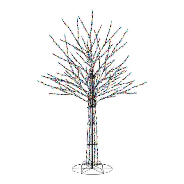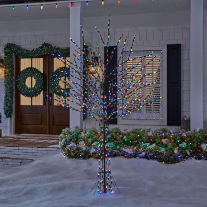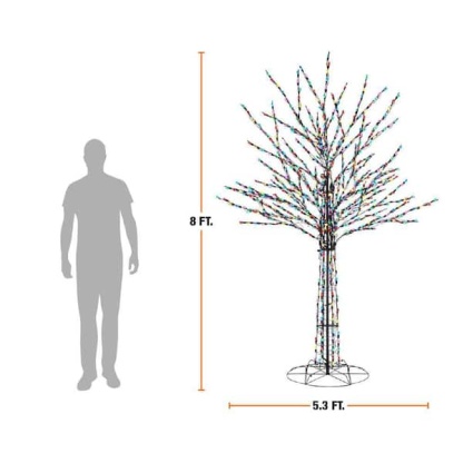 Create a festive Christmas display with this 8 ft. Giant-Sized LED Pre-Lit Bare Tree from Home Accents Holiday. This tree is suitable for indoor or outdoor use. It has 700 multi-colored LED lights and a durable pre-wired metal frame. It plugs into a standard outlet for flexible placement. Ground stakes are included. It's the perfect yard decoration for your home, front porch, or yar. This is suitable for indoor or outdoor use.