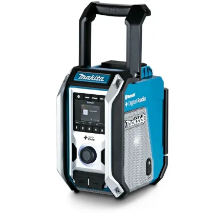 The DMR115 delivers great sound in a compact size and is equipped with Digital DAB+ radio and Bluetooth to wirelessly connect your mobile device to play music. It has one auxiliary port for MP3 compatibility and delivers rich stereo sound from two powerful 3" side-firing speakers and a powerful 25W subwoofer. The DMR115 is engineered to stand up against harsh job site conditions with protective bumpers, and features dust and water-resistant construction for increased durability, giving it an IP65 rating.