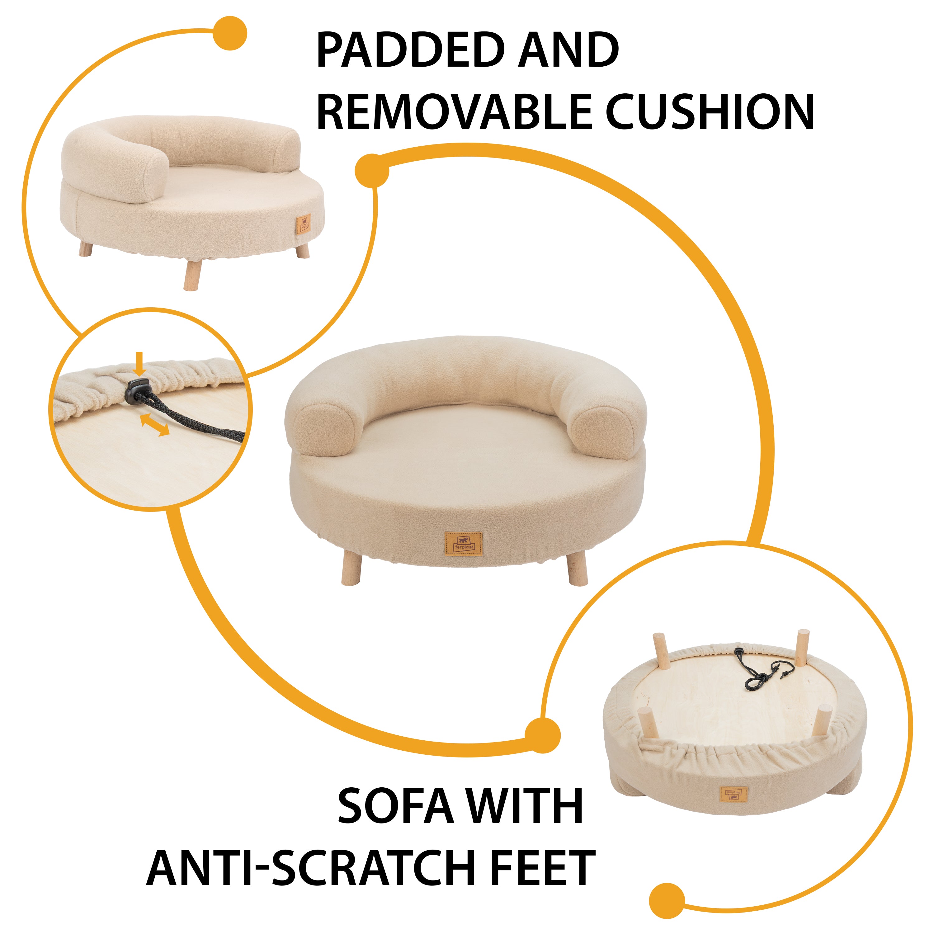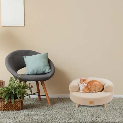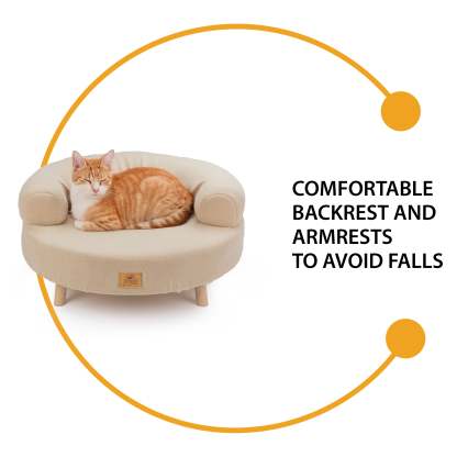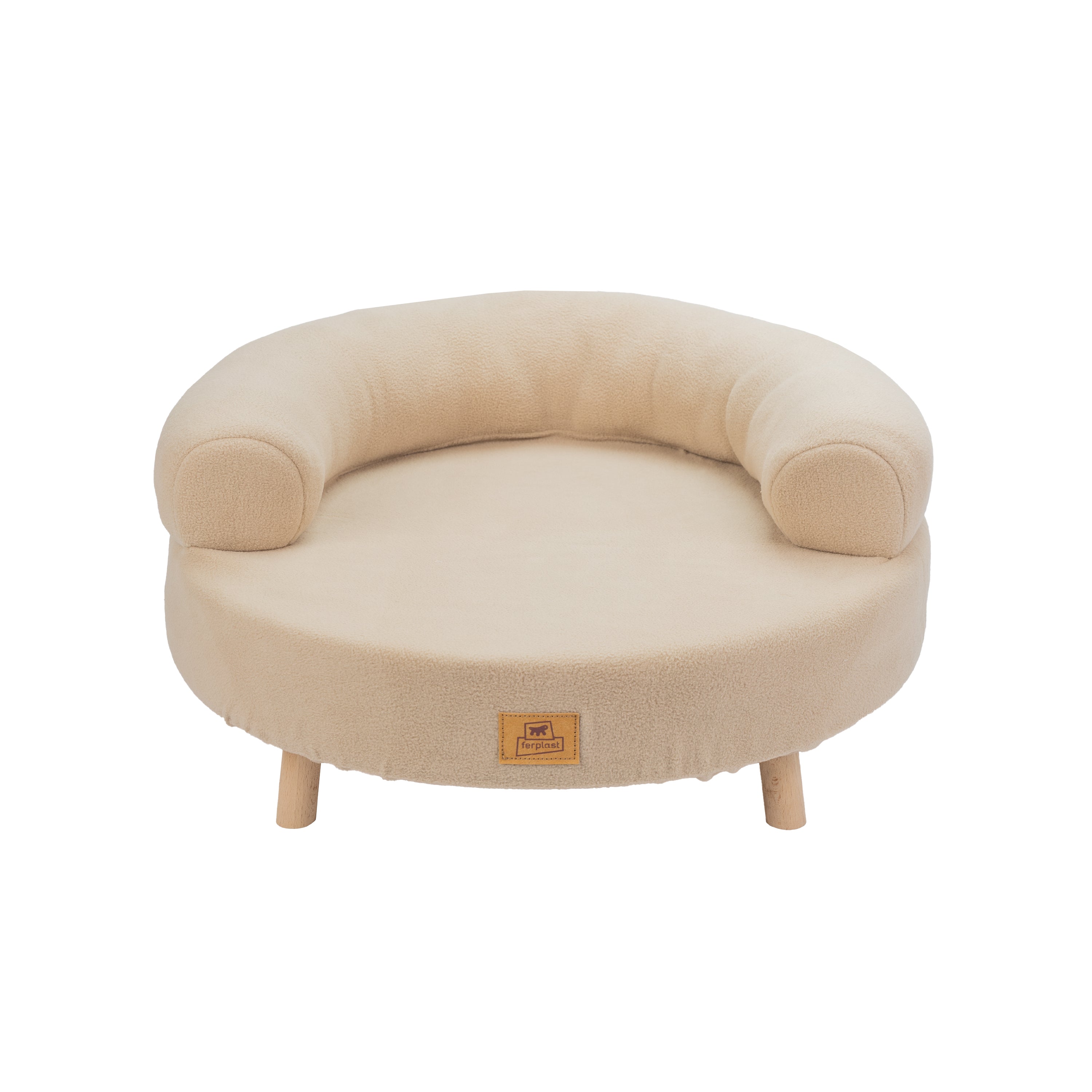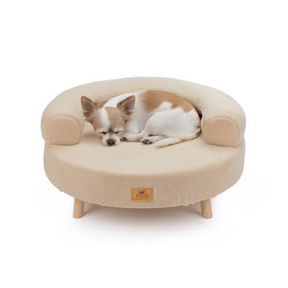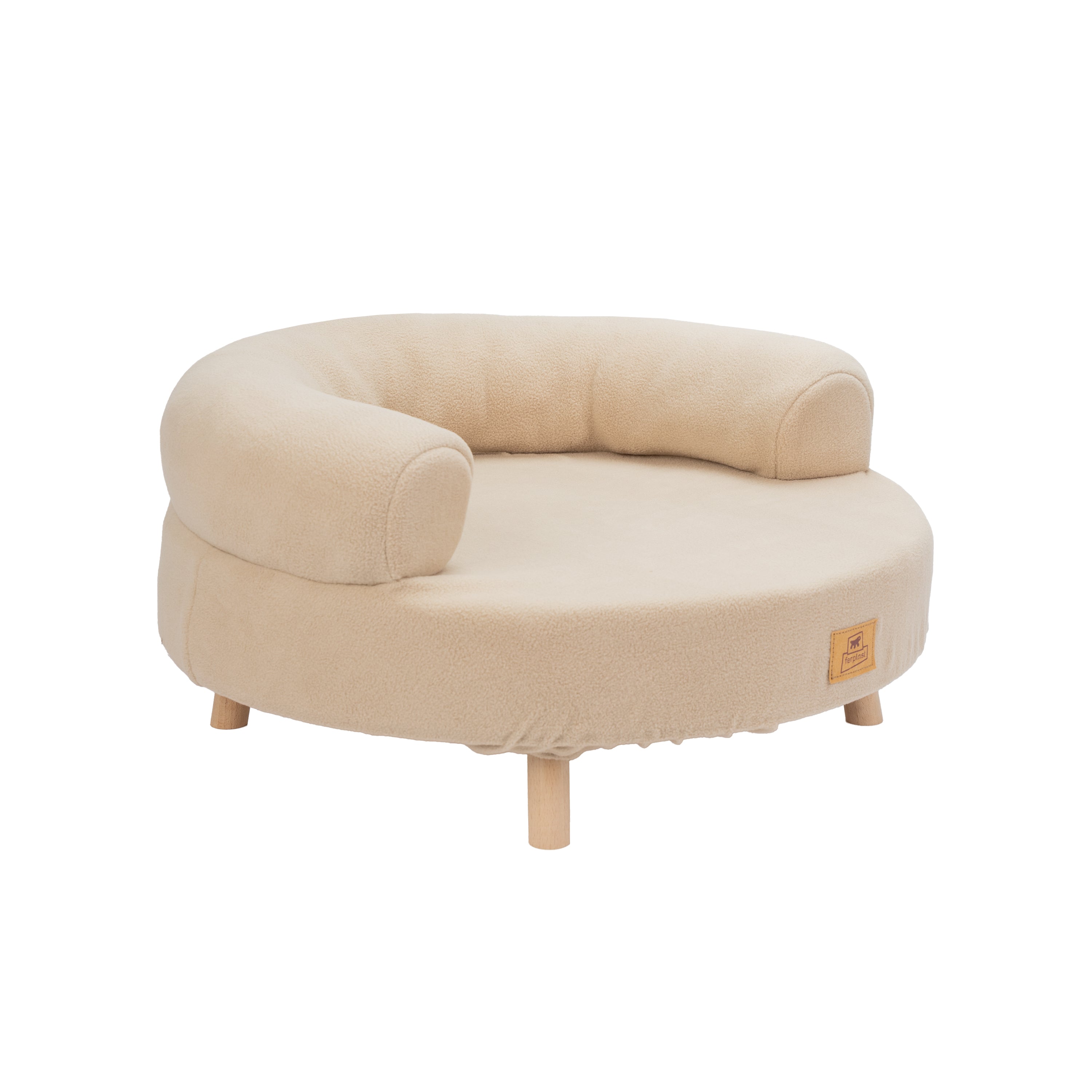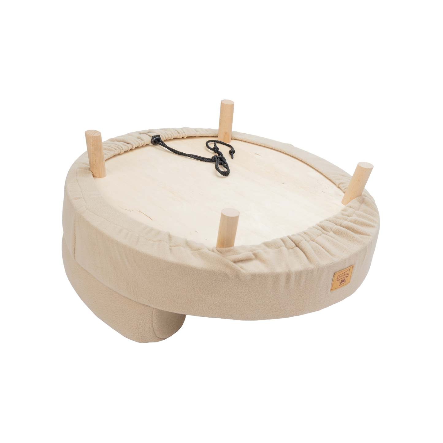 Aki est un lit pour animaux de compagnie en bois, de style fauteuil, conçu pour offrir aux petits chiens et chats un espace de repos doux, intime et rassurant. Sa structure en pin nordique certifié FSC™ garantit stabilité et charme naturel, sublimant sa forme ronde et enveloppante.