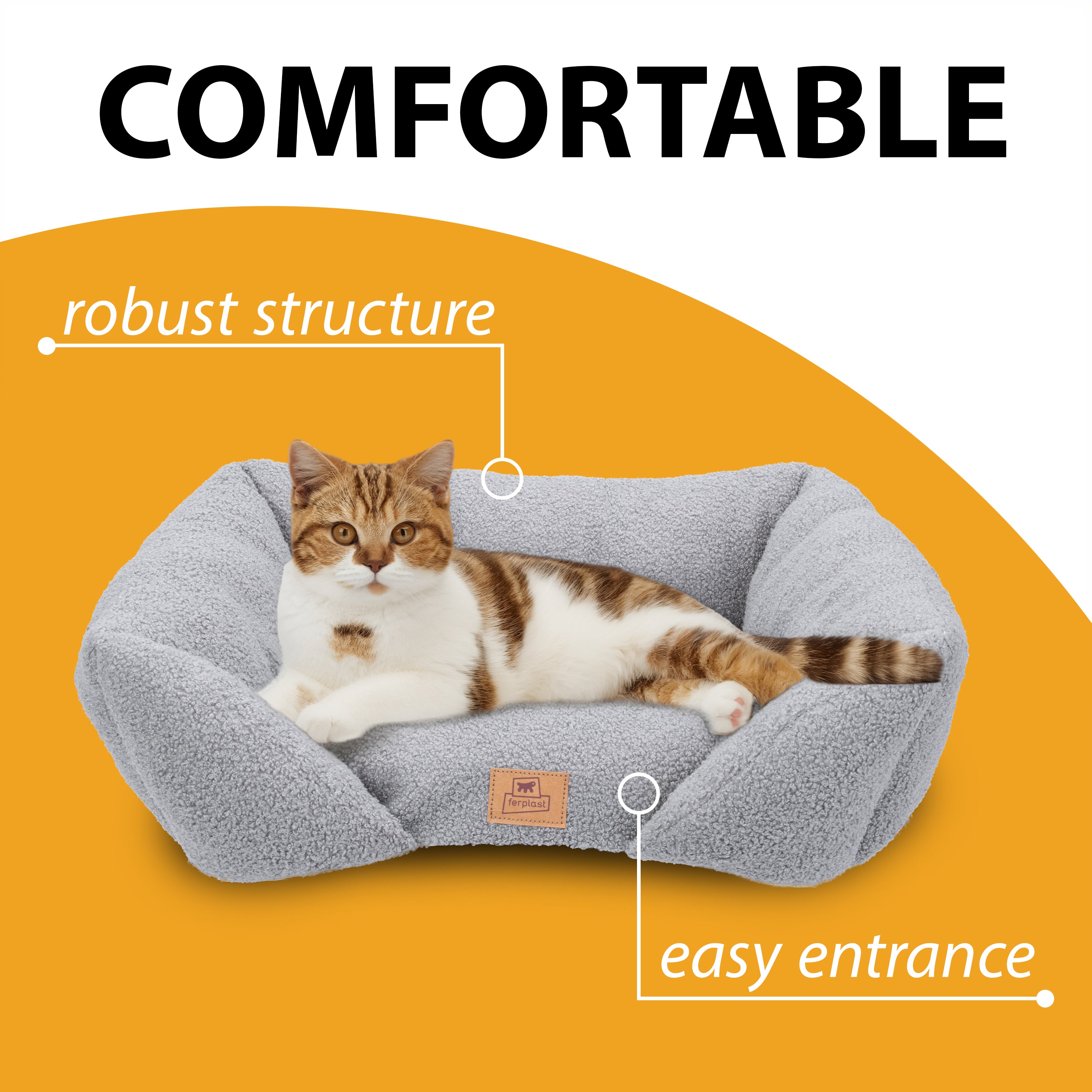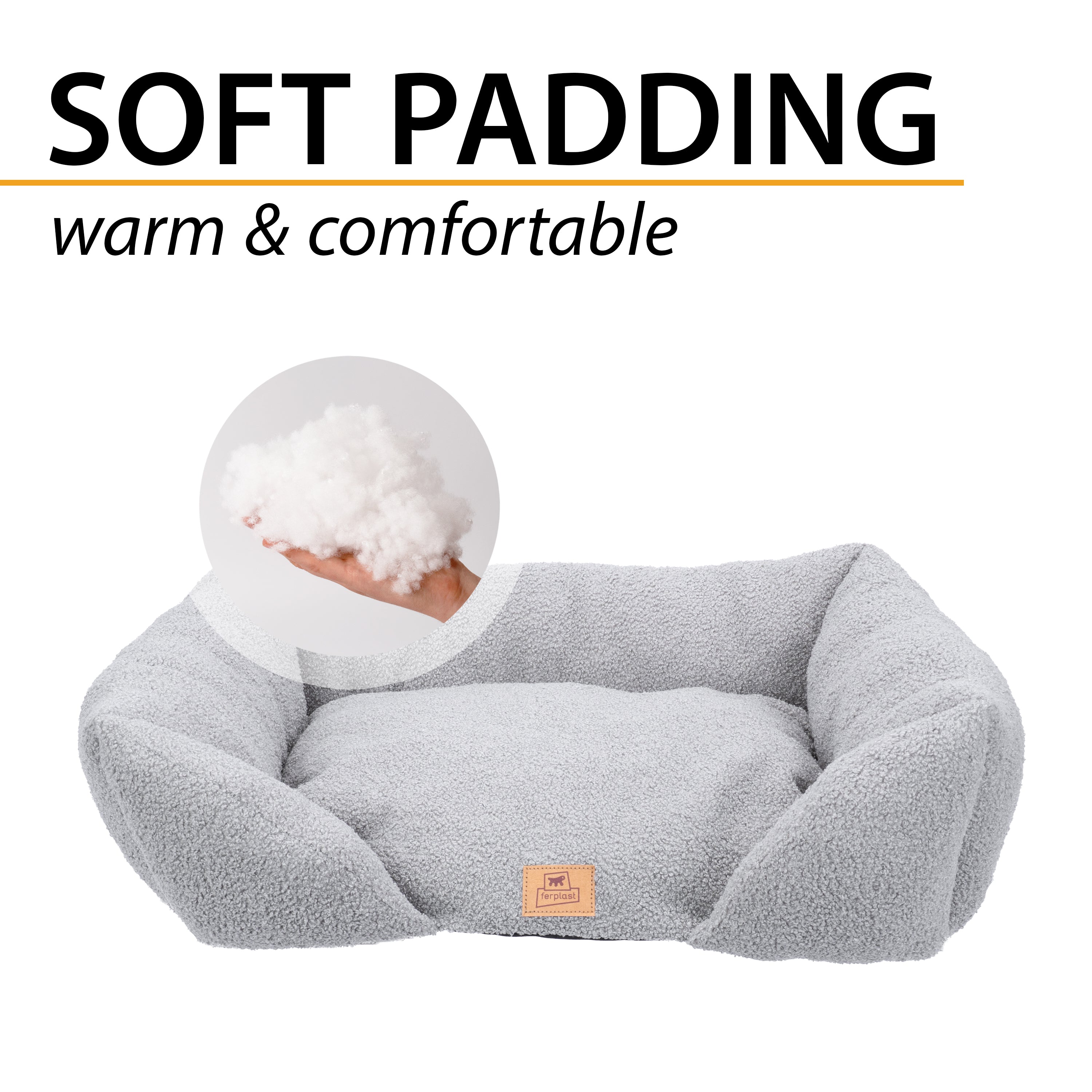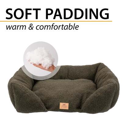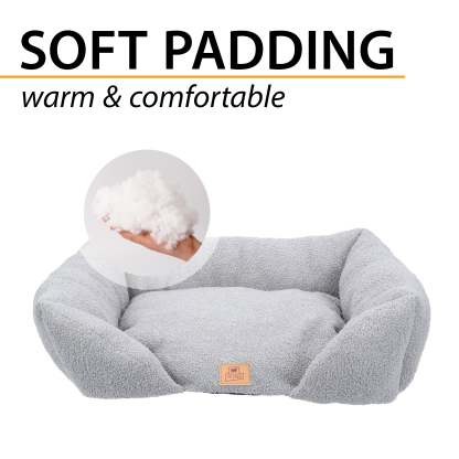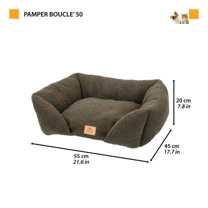 Le lit Pamper Bouclé pour chiens et chats allie style et élégance à confort et fonctionnalité, offrant à votre animal un nid douillet pour se reposer. Confectionné en tissu imitation bouclé doux, extra doux et chaud, il est conçu pour assurer bien-être et protection à tout moment de la journée. Sa forme rectangulaire avec un bord avant abaissé facilite l'entrée et la sortie de votre animal, tandis que les côtés surélevés offrent soutien et sécurité, transformant le lit en un refuge doux et protecteur. Le rembourrage intégré garantit confort et détente, enveloppant votre compagnon à quatre pattes d'une douce chaleur. Pratique et fonctionnel, le canapé pour animaux Pamper Bouclé est lavable à la main à 30 °C, pour une hygiène et un confort optimaux. Il est disponible dans une variété de coloris raffinés qui s'harmonisent facilement avec tous les intérieurs. Les deux plus petites tailles, Pamper 50 et 60, conviennent aux chats et aux petits chiens, tandis que la plus grande, Pamper 80, est particulièrement confortable pour les chiens et également recommandée pour les grands chats.