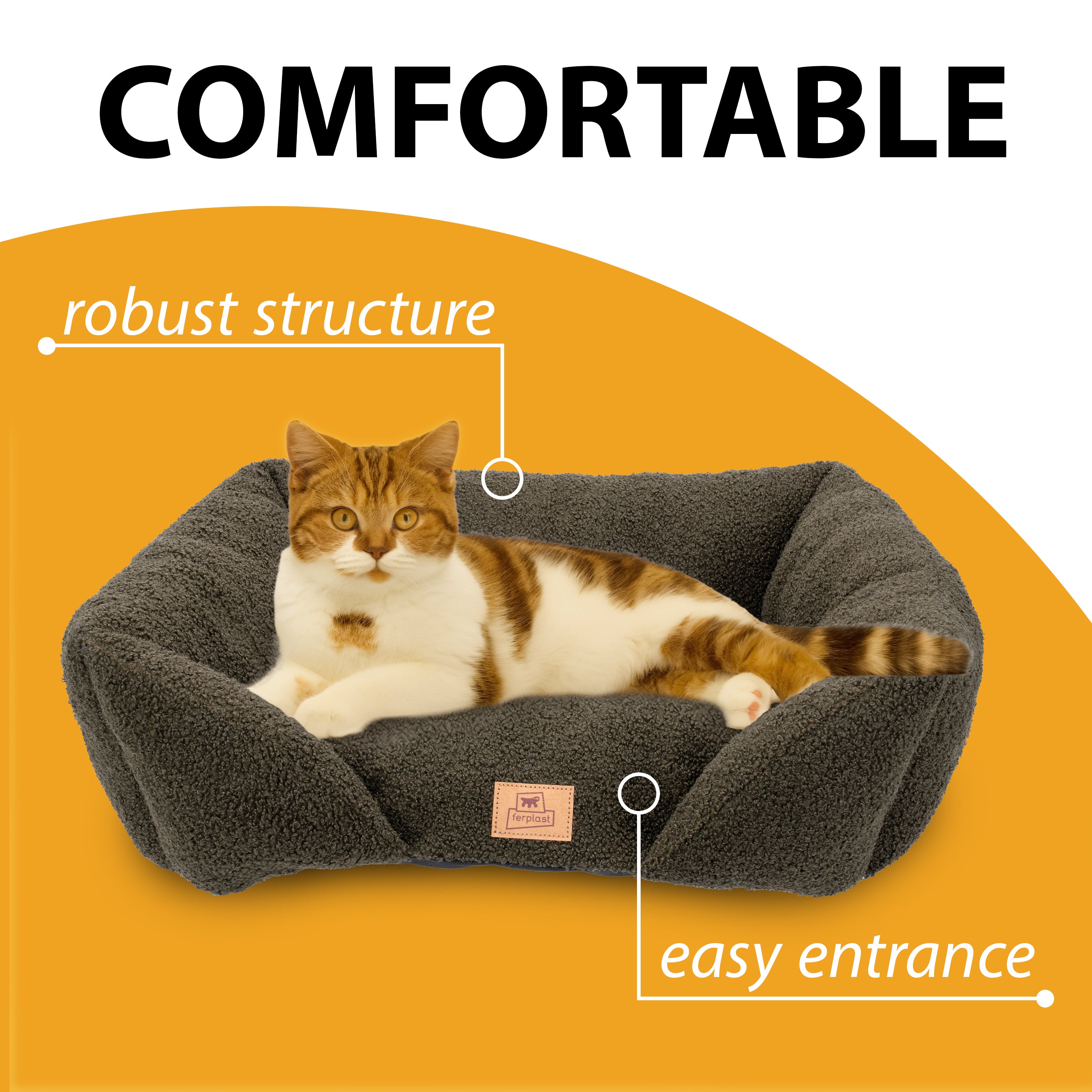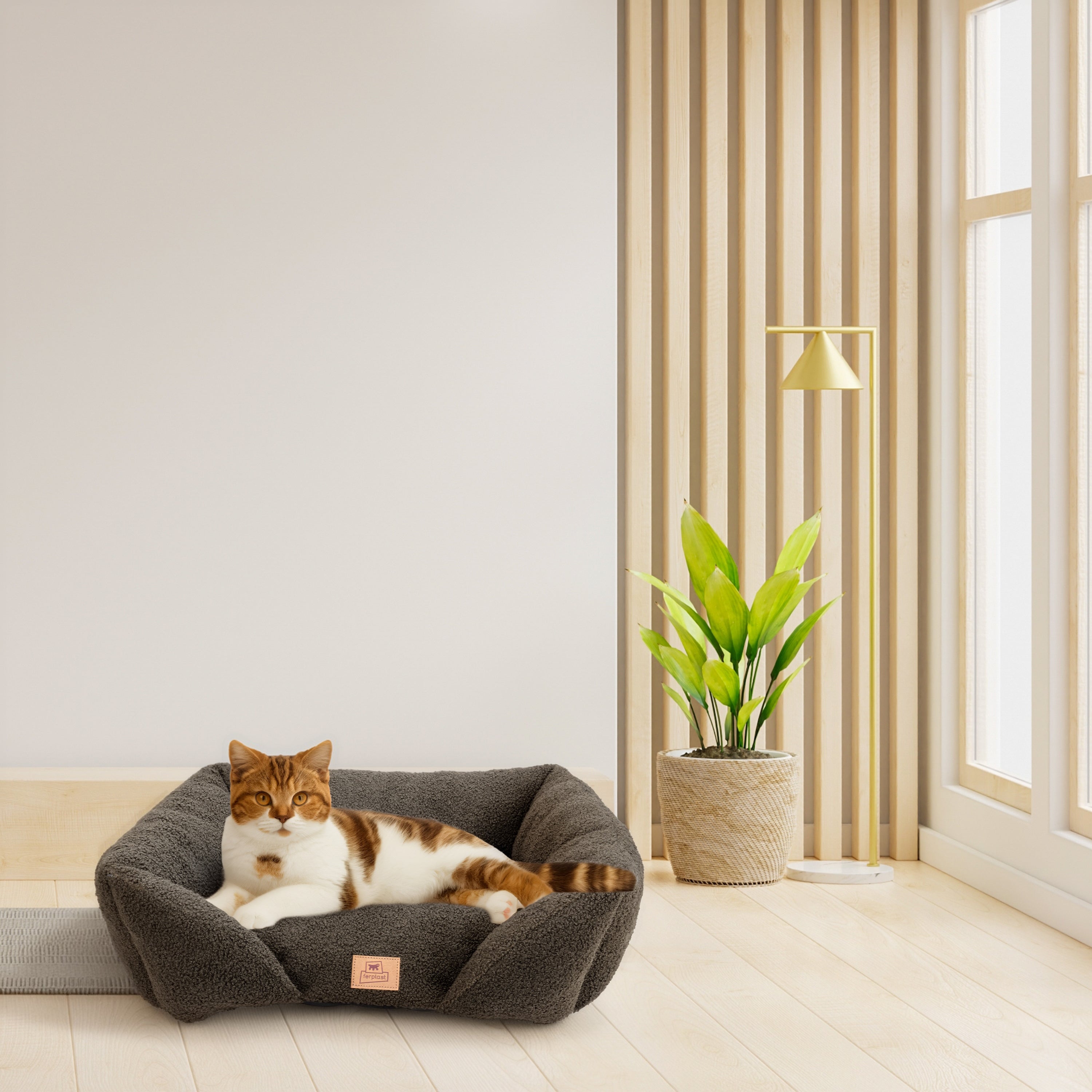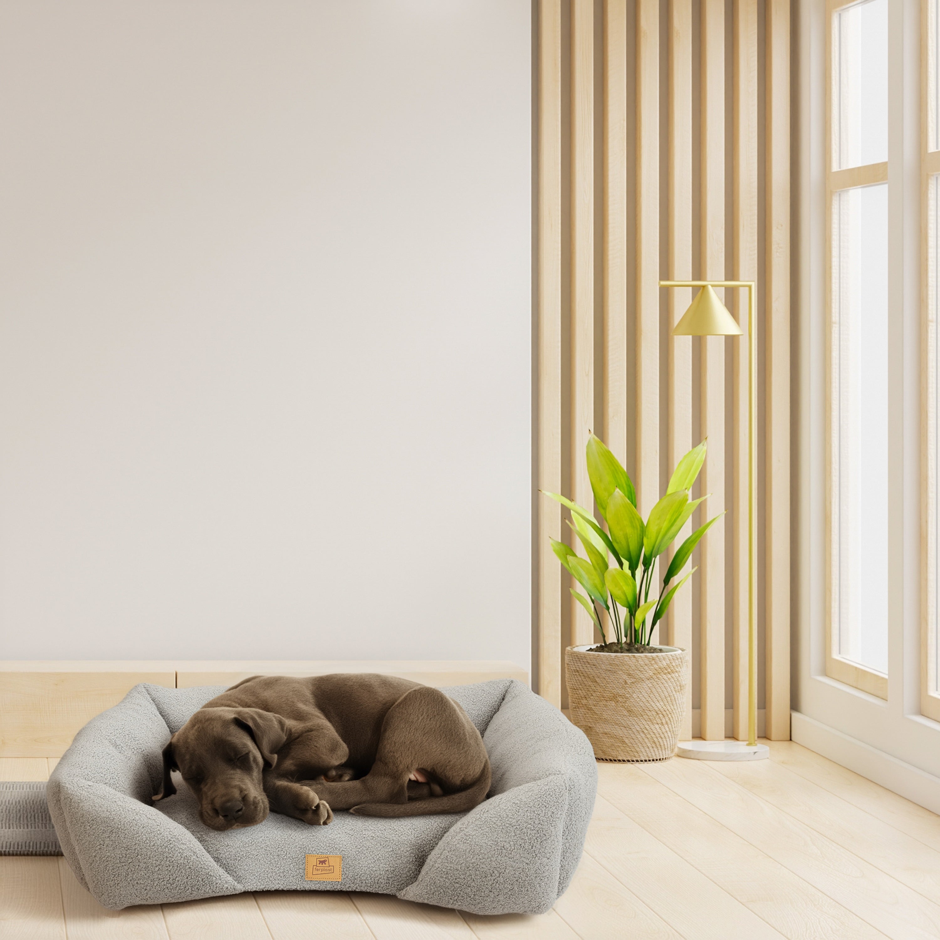 Le lit Pamper Bouclé pour chiens et chats allie style et élégance à confort et fonctionnalité, offrant à votre animal un nid douillet pour se reposer. Confectionné en tissu imitation bouclé doux, extra doux et chaud, il est conçu pour assurer bien-être et protection à tout moment de la journée. Sa forme rectangulaire avec un bord avant abaissé facilite l'entrée et la sortie de votre animal, tandis que les côtés surélevés offrent soutien et sécurité, transformant le lit en un refuge doux et protecteur. Le rembourrage intégré garantit confort et détente, enveloppant votre compagnon à quatre pattes d'une douce chaleur. Pratique et fonctionnel, le canapé pour animaux Pamper Bouclé est lavable à la main à 30 °C, pour une hygiène et un confort optimaux. Il est disponible dans une variété de coloris raffinés qui s'harmonisent facilement avec tous les intérieurs. Les deux plus petites tailles, Pamper 50 et 60, conviennent aux chats et aux petits chiens, tandis que la plus grande, Pamper 80, est particulièrement confortable pour les chiens et également recommandée pour les grands chats.