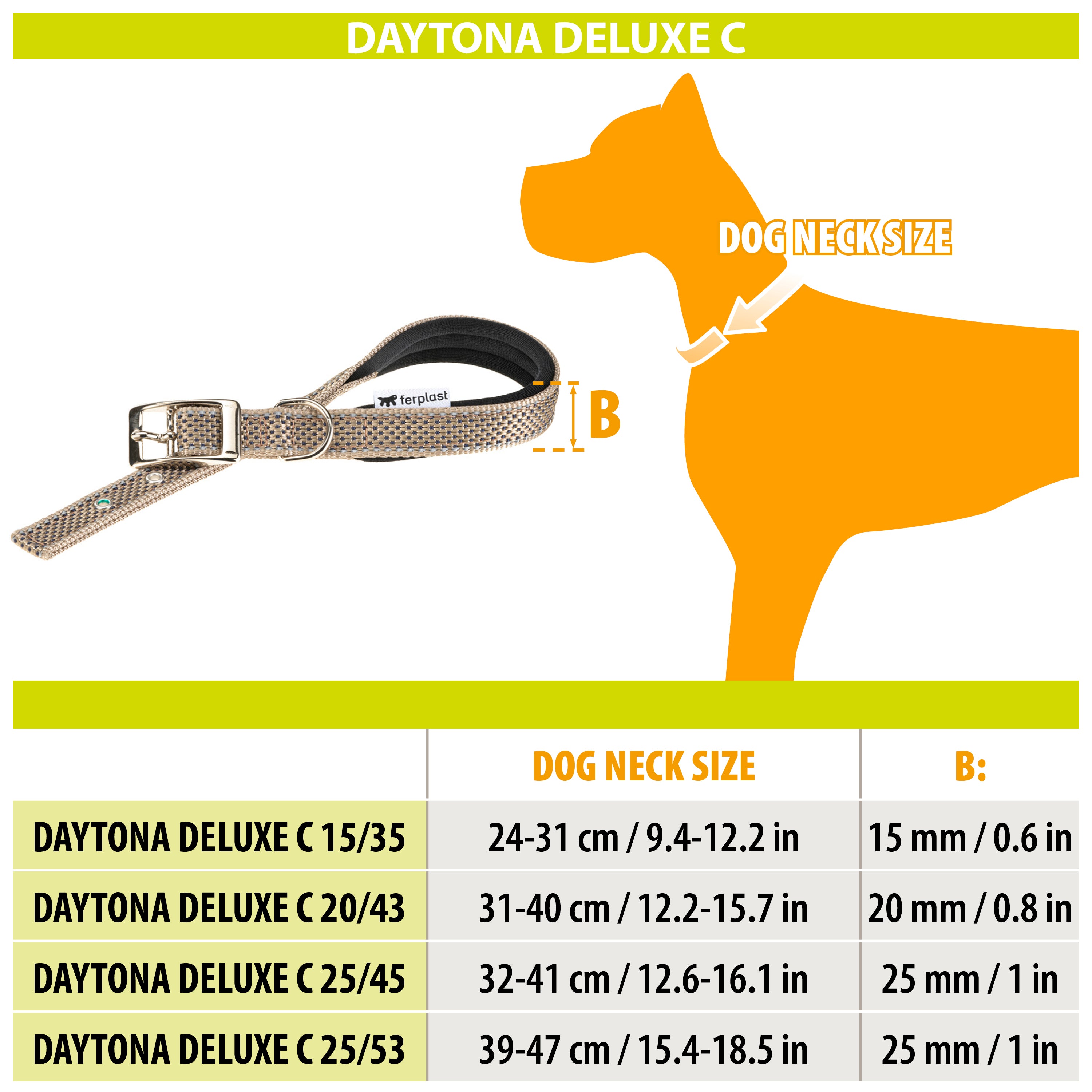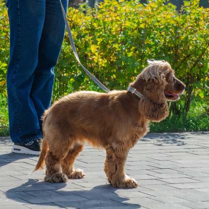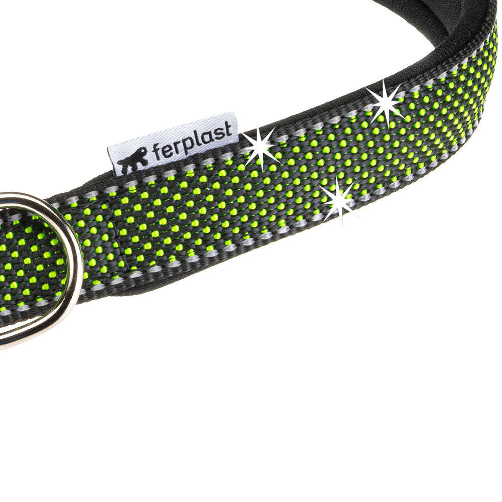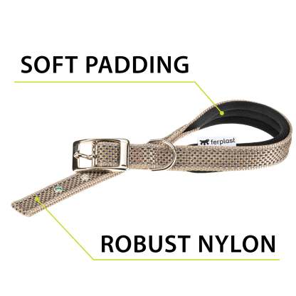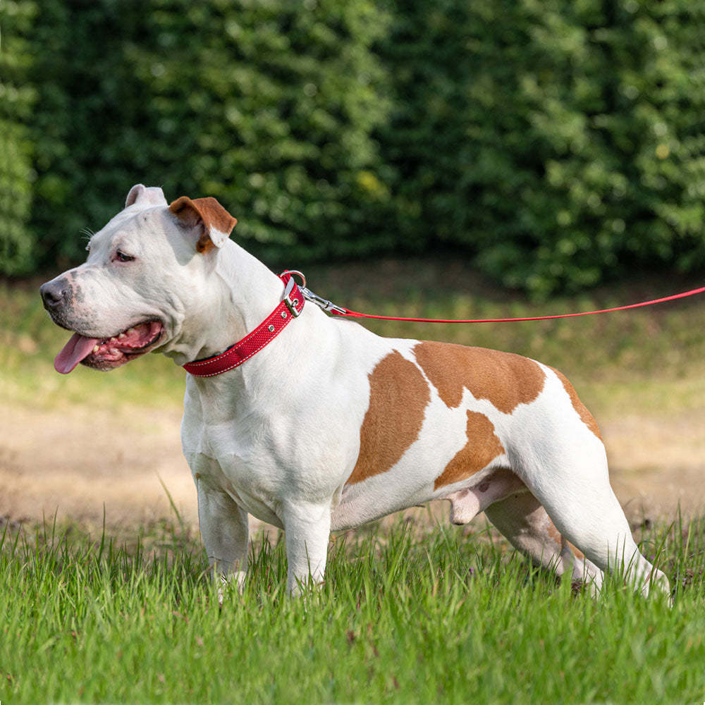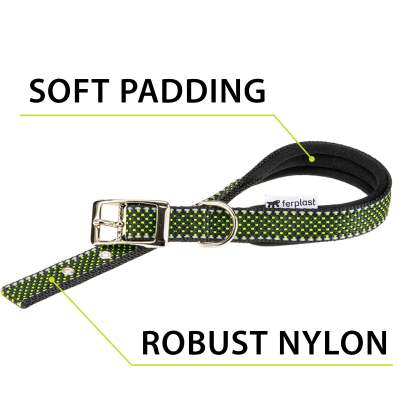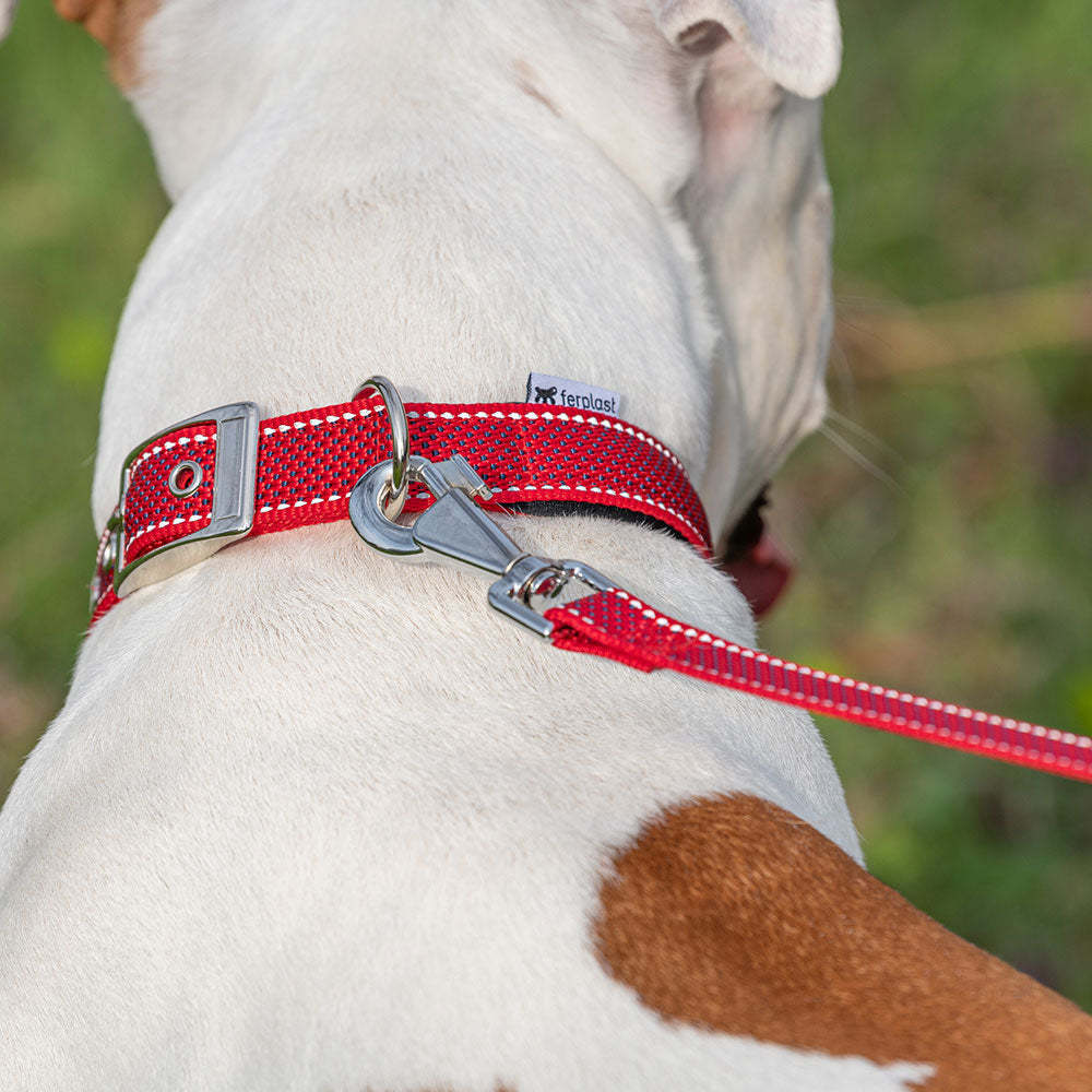 Le collier pour chien Daytona Deluxe est confectionné dans un tissu robuste et élégant. Il est doté d'un système de réglage à quatre trous et d'une boucle métallique raffinée. Grâce au rembourrage doux de la sangle intérieure, il est particulièrement confortable au contact du cou de votre compagnon. De plus, ses coutures réfléchissantes le rendent visible même par faible luminosité, idéal pour les promenades nocturnes avec Fido. Les colliers Daytona Deluxe sont disponibles en différentes couleurs et tailles, avec des circonférences (de 27 à 53 cm) et des largeurs de sangle (de 15 à 25 mm) variables. Ils peuvent être associés à tout moment aux laisses et harnais de la même gamme.