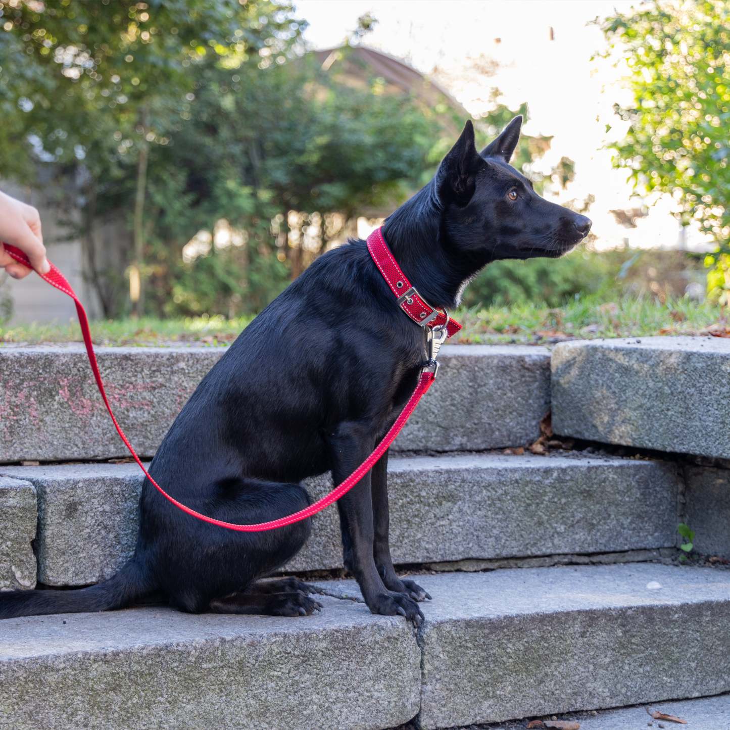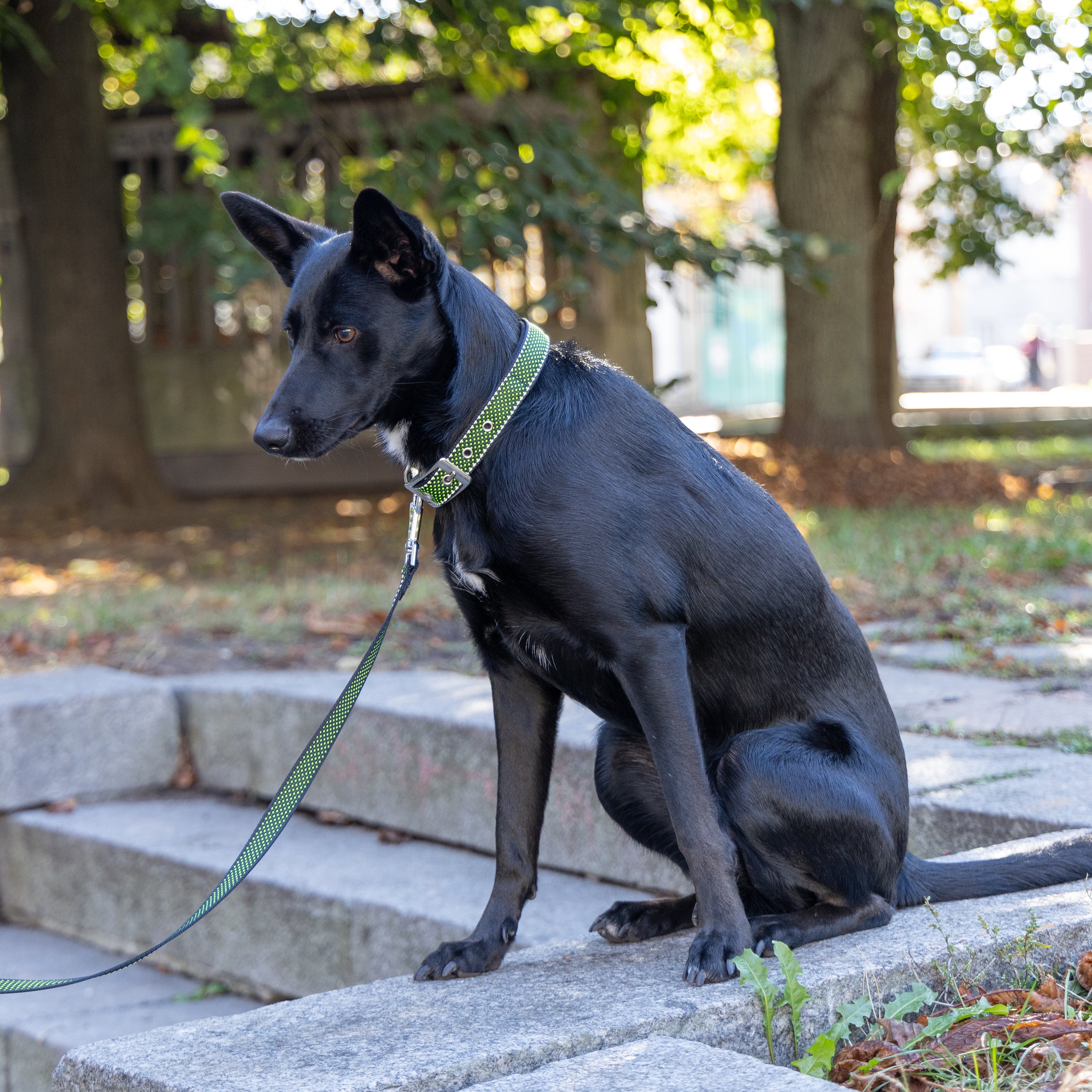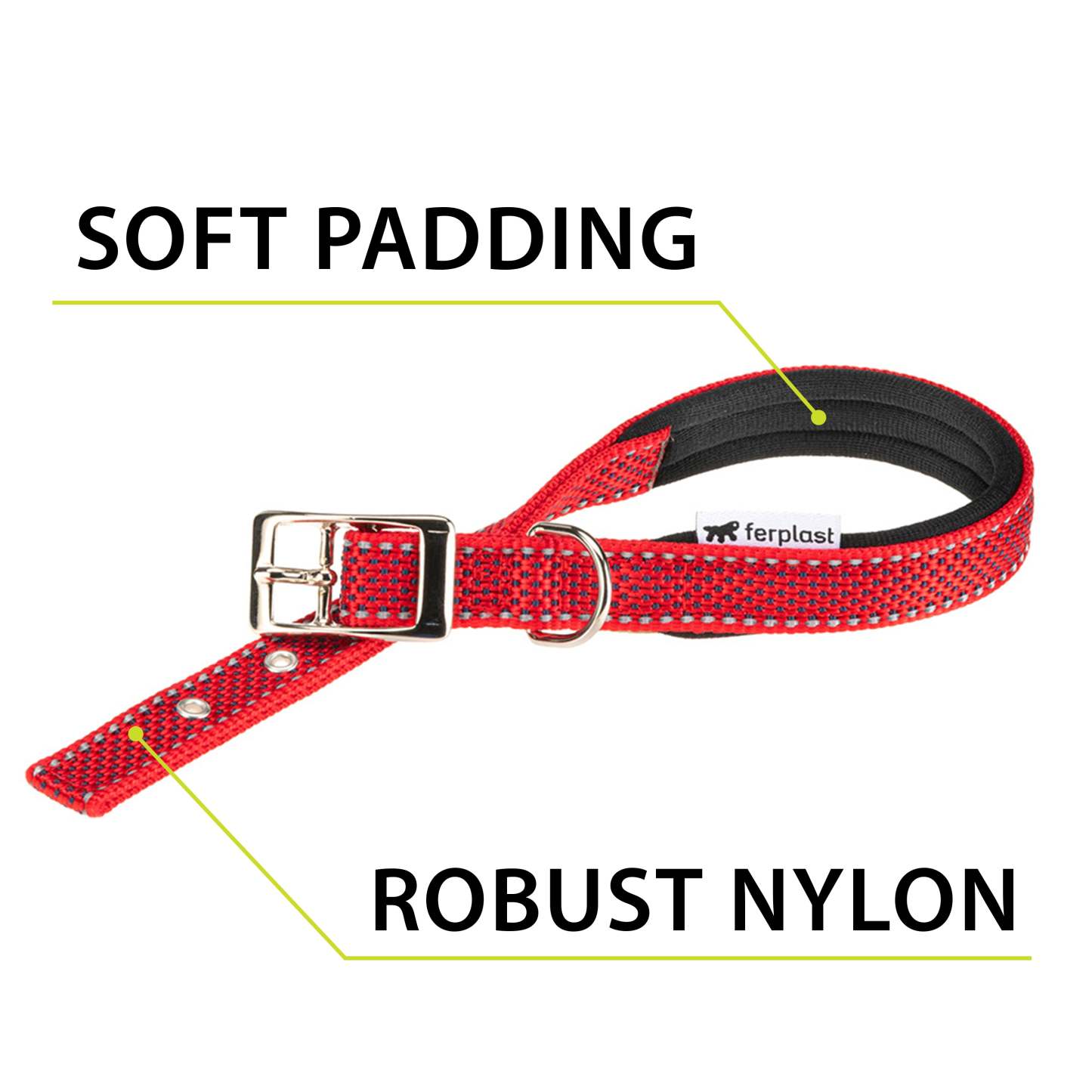 Le collier pour chien Daytona Deluxe est confectionné dans un tissu robuste et élégant. Il est doté d'un système de réglage à quatre trous et d'une boucle métallique raffinée. Grâce au rembourrage doux de la sangle intérieure, il est particulièrement confortable au contact du cou de votre compagnon. De plus, ses coutures réfléchissantes le rendent visible même par faible luminosité, idéal pour les promenades nocturnes avec Fido. Les colliers Daytona Deluxe sont disponibles en différentes couleurs et tailles, avec des circonférences (de 27 à 53 cm) et des largeurs de sangle (de 15 à 25 mm) variables. Ils peuvent être associés à tout moment aux laisses et harnais de la même gamme.