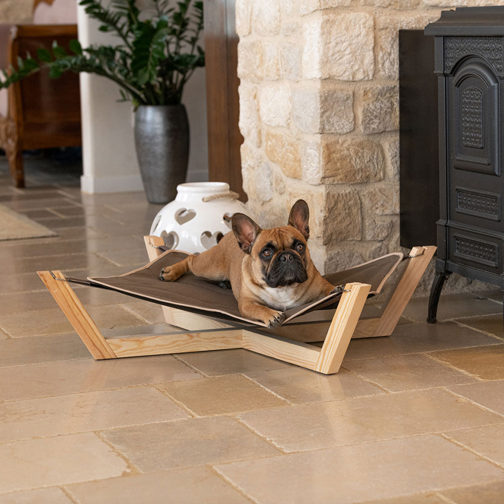 Le hamac pour chien Eden, idéal pour offrir à votre compagnon à quatre pattes un repos confortable et surélevé, arbore un design élégant et moderne. Il s'utilise aussi bien à l'intérieur que sous un porche ou sur une terrasse. De conception italienne, Eden est fabriqué en bois résistant, certifié FSC™, issu de forêts gérées durablement selon des normes environnementales, sociales et économiques strictes. Le hamac est parfaitement isolé du sol et est doté d'une housse amovible et lavable en machine. La housse se fixe à la base du hamac grâce à des crochets métalliques et est équipée de sangles réglables pratiques, permettant un ajustement en fonction du poids de votre animal. Le hamac Eden est livré dans un emballage compact, facile à monter et disponible en différentes tailles, recommandées pour les chiens de taille moyenne et grande.