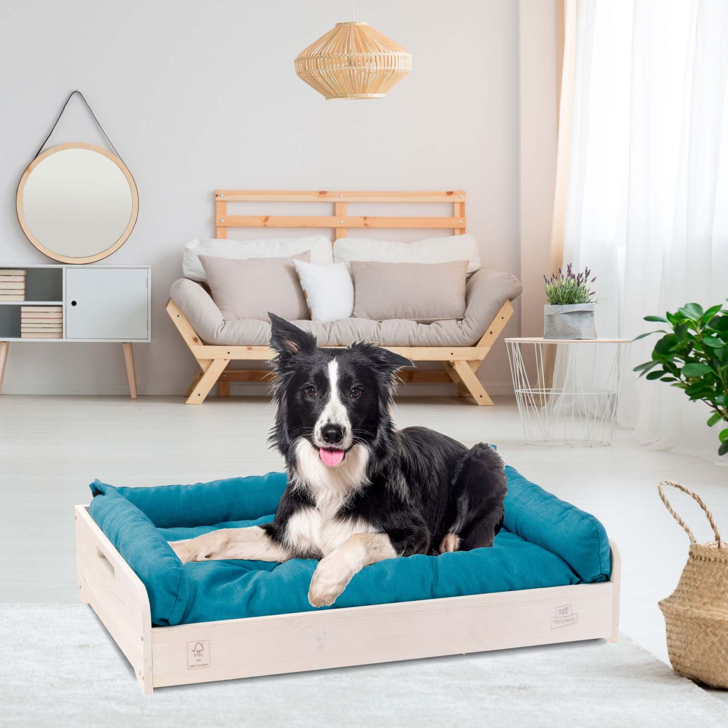 Le lit Hall est un élégant panier en bois pour chats et chiens, alliant design raffiné et confort optimal. Son coussin moelleux et rembourré offre un confort exceptionnel, créant ainsi l'endroit idéal pour le repos de votre animal. Lavable en machine à 30 °C, ce coussin vous permet de maintenir un environnement de sommeil propre et hygiénique.