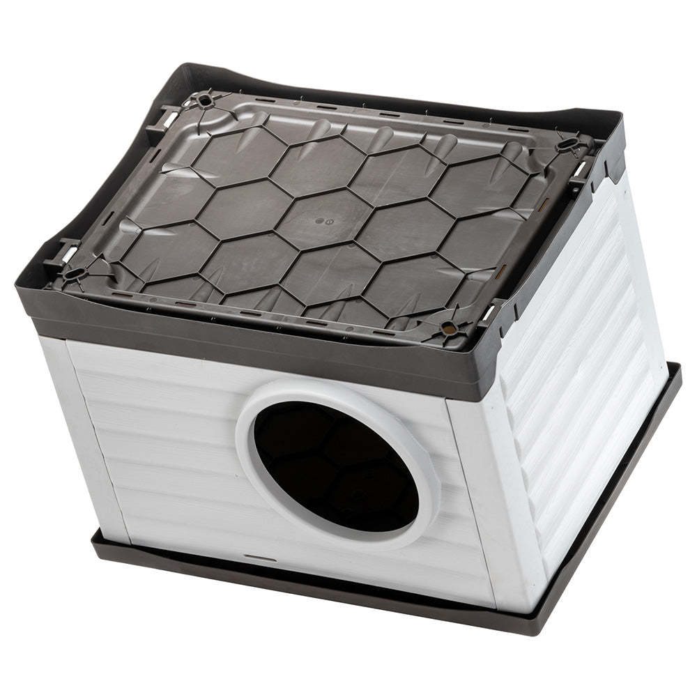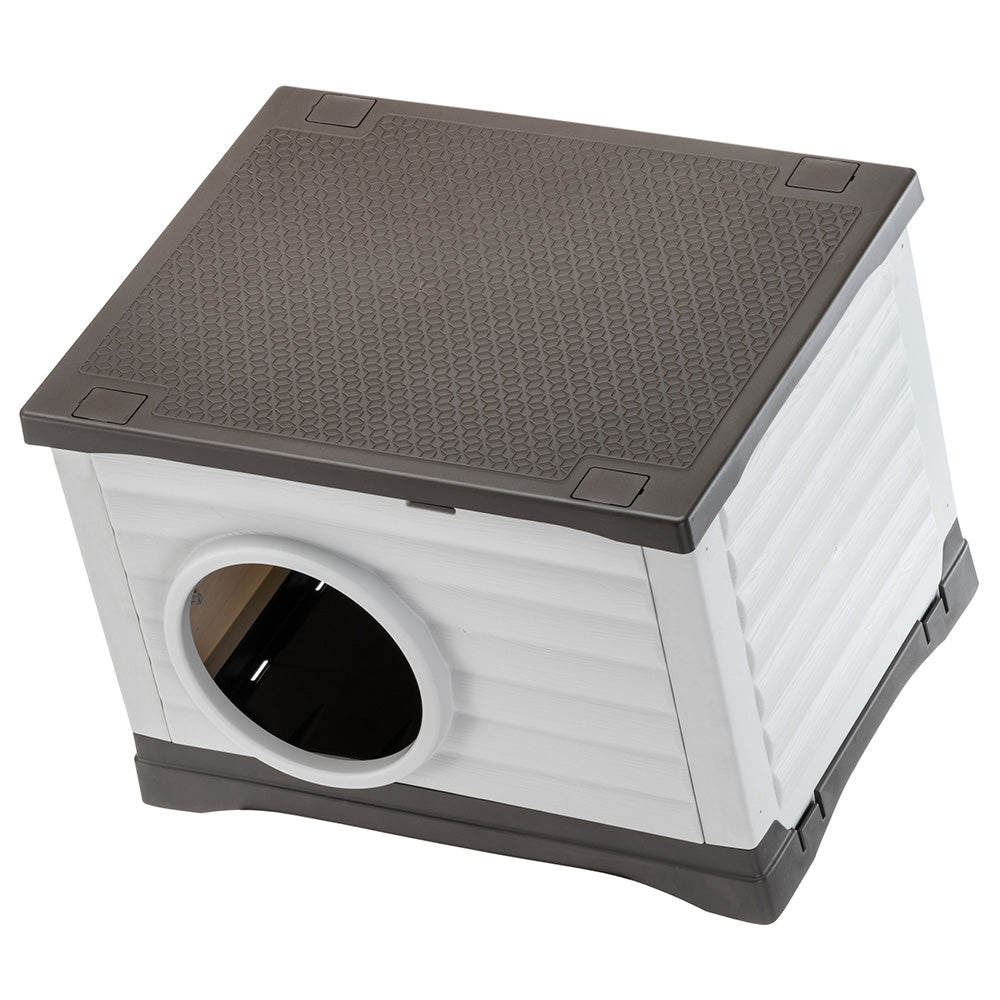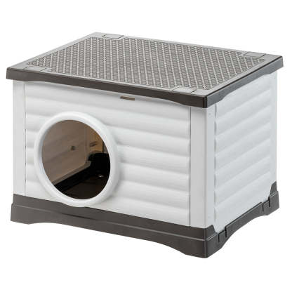 Fabriqué en résine thermoplastique robuste, un matériau résistant aux chocs et aux UV, le chenil d'extérieur Petvilla pour chiens et chats est idéal en toutes saisons. Son grand volume intérieur assure confort et espace à votre animal. Le fond, doté de fentes spéciales, permet l'écoulement de l'eau et évite la stagnation, garantissant ainsi un environnement sec. Le toit plat peut servir d'étagère ou d'espace de détente. Le chenil est vendu entièrement démonté afin de réduire au maximum son volume d'emballage. Son montage est extrêmement simple et ne nécessite aucun outil spécifique. Il est ainsi facile à transporter et à utiliser, même en vacances. Son toit amovible facilite également le nettoyage. Disponible en différentes tailles : le modèle Petvilla 50 convient aux très petits chiens, chats et lapins, tandis que le Petvilla 60 est adapté aux petits chiens et chats.